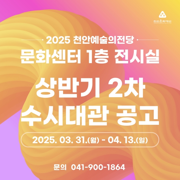 [충청뉴스큐] 천안문화재단은 오는 3월 31일~ 4월 13일 천안예술의전당 문화센터 전시실 2차 수시대관 공모 접수를 받는다고 28일 밝혔다.