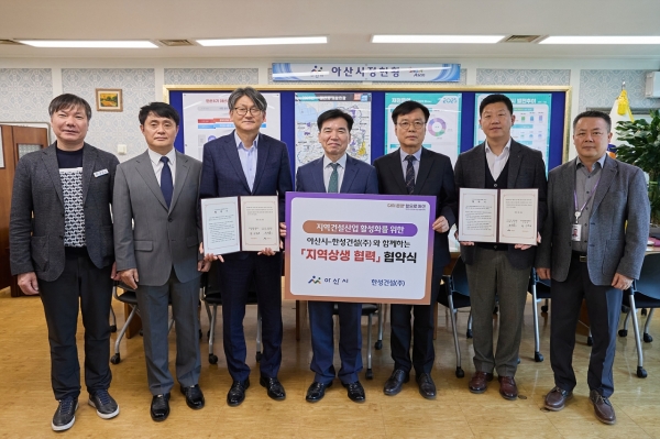 [충청뉴스큐] 아산시가 한성건설㈜과 아산시청에서 아산시 지역건설산업 활성화를 위한 상생협력 업무협약을 28일 체결했다.