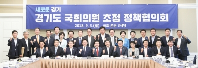 이재명 도지사는 3일 오전 국회에서 경기도 지역 국회의원 36명이 함께한 가운데 국회의원 초청 정책협의회를 열고 “경기도정을 하는데 있어서 당을 가리지 않고 어떤 것이 도민들에게 도움이 되는가를 가지고 판단하겠다”면서 “여당은 물론이고 야당에서도 공식 소통채널을 만들어주면 함께 지역발전을 위해 협의하고 지원하겠다”라고 말했다.