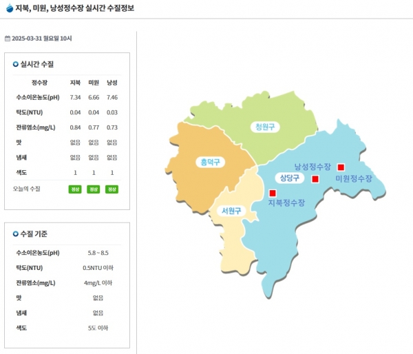 수질정보는 청주시상수도사업본부 누리집에서 확인할 수 있다.