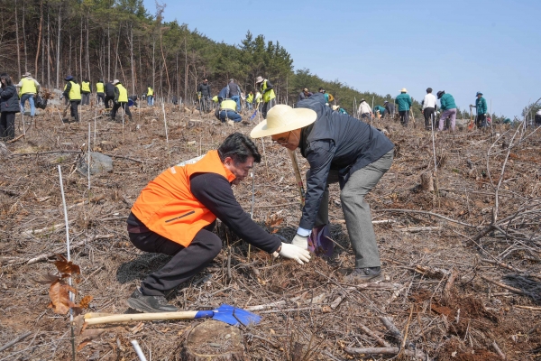 이날 행사에는 김기웅 군수를 비롯해 관내 기관·단체, 지역주민 등 약 300여명이 참여했으며 총 2.3ha의 면적에 상수리나무 6900본을 식재하며 나무심기의 중요성과 산림의 소중함을 되새겼다.