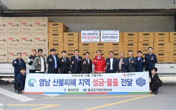 홍성군에 따르면 홍성군기업인협의회는 지난 3일 최근 발생한 대규모 산불로 피해를 입은 영남지역의 이재민들을 돕기 위해 홍성군과 함께 모금 활동을 전개해 성금과 물품 총 3천600만원을 대한적십자사에 기탁하며 구호 활동에 적극적으로 나서고 있다.