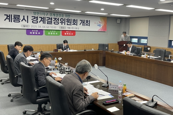[충청뉴스큐] 계룡시는 지난 4일 시청 상황실에서 2024년 지적재조사 사업지구인 향한1지구 경계결정을 심의·의결하기 위해 경계결정위원회를 개최했다.