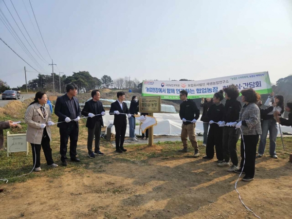 [충청뉴스큐] 국립농업과학원은 재생유기농업의 핵심기술 및 작목 중심 실천기술 개발을 위한 가이드라인 구축을 위해 지난 3일 홍성군 홍동면 운월리 지역센터 마을활력소에서 25년 신규 협업농장 현판식 및 간담회를 주최했다고 밝혔다.
