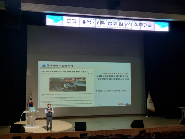 한편 시는 지난달 31일 민간 사업주, 안전·보건관리자, 안전보건 업무 담당자 100여명을 대상으로 도급·용역·위탁업체들이 준수해야 할 안전보건 관리 조치 이행 방법 등 산업안전보건교육을 진행했다.