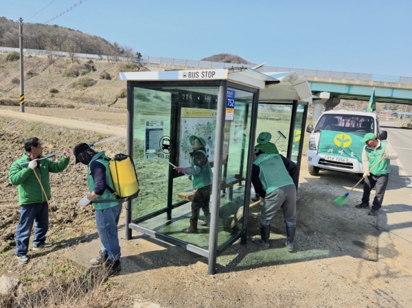 이어 버스승강장을 돌며 물청소, 불법 광고물 제거, 대기 의자 청소, 주변 제초 작업 등을 펼쳐 쾌적한 대중교통 환경을 조성했다.