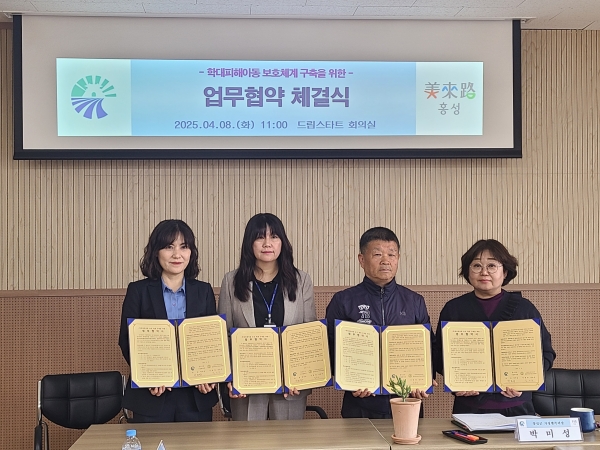 [충청뉴스큐] 홍성군은 지난 8일 홍성남자단기청소년쉼터, 홍성여자단기청소년쉼터와 학대피해아동 보호체계 구축을 위한 업무협약을 체결했다.