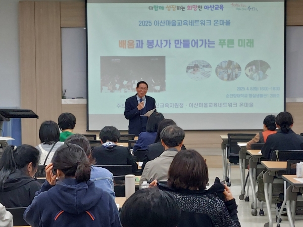 [충청뉴스큐] 아산교육지원청은 2025년 4월 8일 순천향대학교 향설생활관에서 ‘배움과 봉사로 만들어가는 푸른 미래’를 주제로 아산마을교육네트워크 온마을 제18차 배움자리를 열었다고 밝혔다.