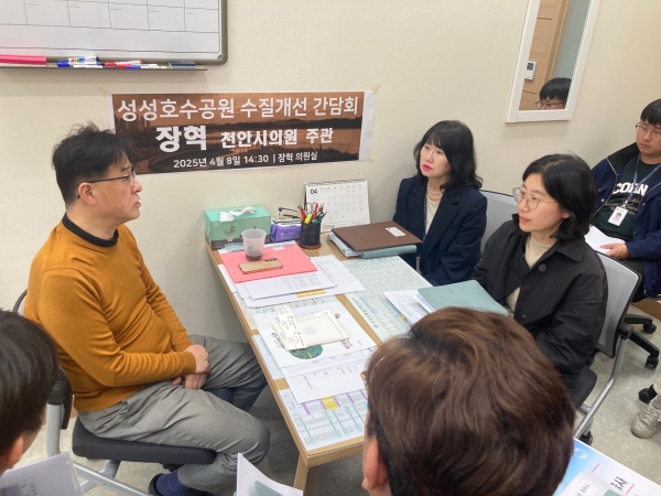 [충청뉴스큐] 천안시의회 장혁 의원은 4월 8일 장혁 의원실에서 성성호수공원 수질개선 간담회를 개최했다.