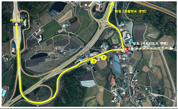 이에 시는 국토관리사무소와 협의를 통해 방곡삼거리 주변 도로 표지판의 문구와 방향을 수정하고 더 넓고 안전한 도로를 안내하도록 개선을 추진했다.