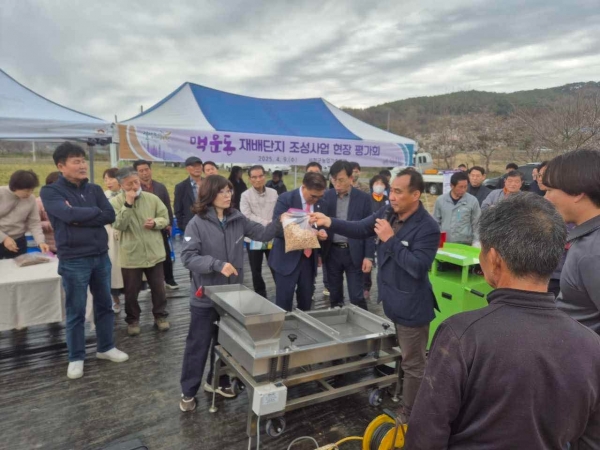 군은 지난 2023년 시범 재배를 시작으로 올해까지 총 40농가에 10헥타르 규모의 재배단지를 조성했으며 수확기·세척기 등 10종 97대의 농기계 지원을 통해 노동력 절감과 생산성 향상에 주력해왔다.