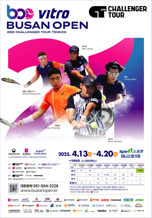 1999년 국내대회 개최 후 올해로 25주년을 맞는 ‘부산오픈’은 세계 남자 챌린저 대회 중에서도 최상위급에 속하는 ‘챌린저 125급 대회’다.