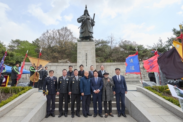 오세현 시장은 “현충사 경내 우물에서 길러온 성수와 아산의 온천수를 합수해 이순신 장군 동상을 정성껏 씻겨드리는 뜻깊은 친수식에 함께 해 영광스럽다”며 “장군의 불굴의 정신을 품은 아산시가 더욱 크고 힘차게 도약하고 장군의 탄신 480주년을 축하하는 축제를 성공적으로 개최하길 기대한다”고 밝혔다.