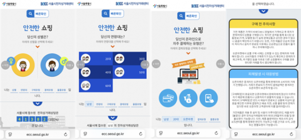 김명선 서울시 공정경제과장은 “이번 온라인 맞춤형 자가 진단 서비스는 소비자 스스로 피해를 예방하고 피해 발생 시, 보다 현명하게 대처할 수 있도록 돕는 데 의미가 있다”며 “앞으로도 축적된 데이터를 바탕으로 시민이 안심하고 온라인 쇼핑을 이용할 수 있도록 소비자 피해 예방에 앞장서겠다”고 말했다.