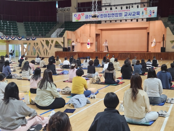 [충청뉴스큐] 금산군은 대한심폐소생술교육원과 함께 지난 11일 금산종합체육관에서 관내 어린이집 보육교직원 150여명을 대상으로 응급처치 및 심폐소생술 교육을 시행했다 이번 교육은 어린이 안전관리에 관한 법률에 근거해 어린이집 보육교직원이 매년 어린이 안전교육을 이수해야 함에 따라 추진됐으며 실제 어린이집 응급상황 발생 시 초기대응 효율성을 높이고자 실습 위주로 진행됐다.