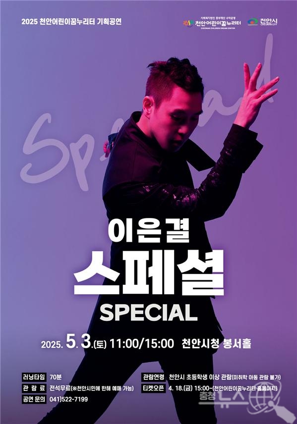 한편, 봉서홀 공연‘이은결 스페셜’은 천안시민 중 초등생 이상 아동과 보호자에 한해 관람이 가능하며 예매는 4월 18일 천안어린이꿈누리터 홈페이지를 통해 진행된다.