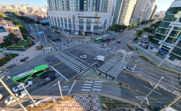 ‘대각선 횡단보도’는 원하는 방향으로 한 번에 건널 수 있는 데다 녹색신호 시 교차로 내 차량 진입을 차단해 교통사고 위험을 줄이는 데 효과적인 것으로 알려져 있다.