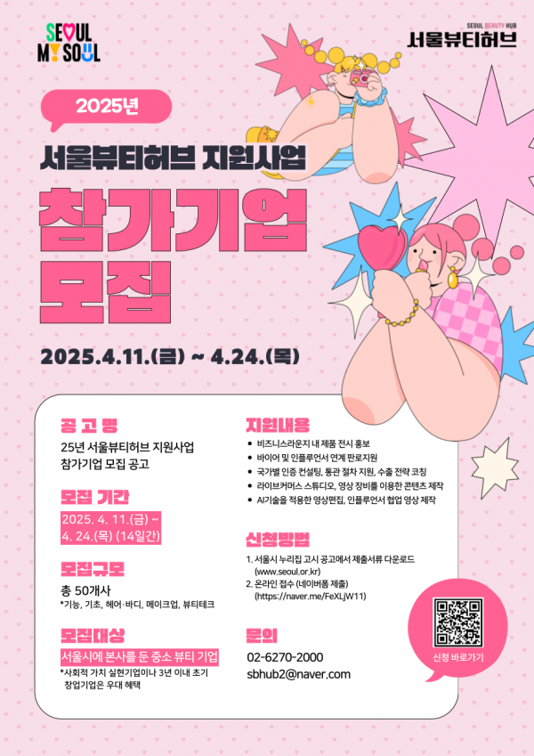 이에 서울뷰티허브에서는 유망 중소 뷰티 기업의 해외 진출과 지속 가능한 성장을 돕기 위해 올해부터 ‘서울뷰티허브 2025 지원사업’을 시작하고 1차 사업에 참가할 기업 50개 사를 오는 4월 24일까지 모집한다.