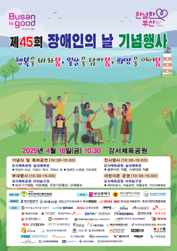 [충청뉴스큐] 부산시는 장애인의 날을 맞아 장애인과 비장애인이 함께 어울리며 소통하는 특별한 하루를 만들고자, 오늘 오전 10시 30분 강서체육공원에서 ‘제45회 장애인의 날 기념행사’를 개최한다고 밝혔다.