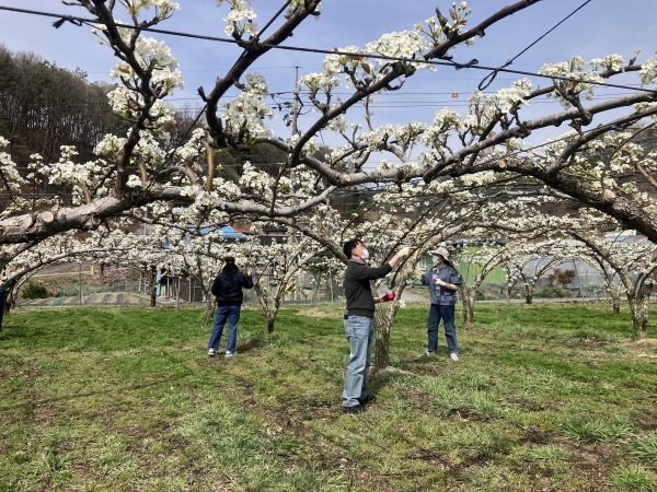 특히 시청 소속 직원들은 배꽃 수분 작업 등 손이 많이 가는 농가를 중심으로 직접 나서서 일손을 보태고 있다.