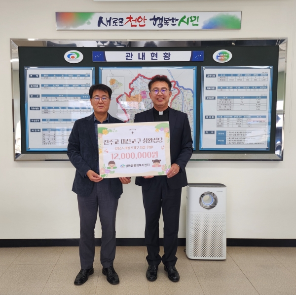 송재오 읍장은 “성환성당의 후원에 진심으로 감사드린다”며 “성금은 소외되는 아이들이 없도록 잘 전달할 수 있도록 할 것”이라고 말했다.