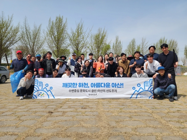 [충청뉴스큐] 아산시 생태하천과, 염치읍·인주면 행정복지센터 직원 30명이 지난 18일 곡교천 백의종군길 일원에서 환경정비 활동을 실시했다.