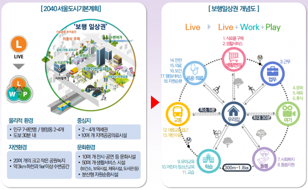 서울시는 ‘주거용도’ 위주로 형성되어 있는 서울의 일상생활 공간을 전면 개편함으로써, 서울 전역에 자립적 보행일상권을 조성하는 ‘서울형 보행일상권’을 실현해, 시민 삶의 질을 한층 높이겠다는 구상이다.