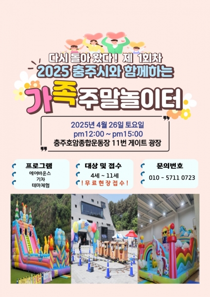 [충청뉴스큐] 충주시는 4월 26일 충주종합운동장 야외광장에서 2025 제1회 신나는 가족 주말 놀이터를 운영한다.
