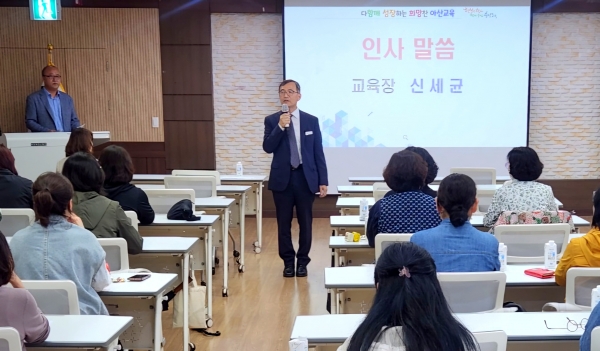 아산교육지원청 신세균 교육장은 이날 연수에 참석한 마을교사와 마을활동가들에게 “소통과 협력으로 마을교육자치를 활성화하고 지역교육 생태계를 함께 만들어 갈 수 있도록 지속적으로 지원하겠다”고 밝혔다.