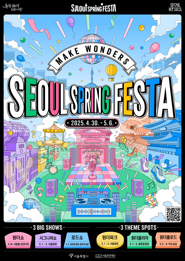 ‘메이크 원더스’를 주제로 진행되는 올해 스프링 페스타는 글로벌 트렌드를 선도하는 K-컬처 중심지 ‘서울’의 매력을 오롯이 경험할 수 있는 ‘3 빅쇼’ 와 ‘3 테마공간’ 등 다채로운 프로그램이 준비되어 있다.