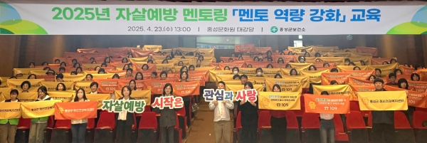 [충청뉴스큐] 홍성군보건소는 지난 23일 홍성문화원 대공연장에서 ‘2025년 자살예방 멘토링 역량강화 교육’을 진행했다.