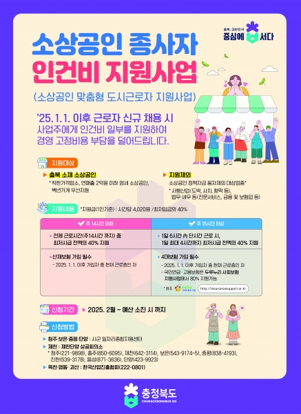 옥천군 관계자는 “이번 지원사업 확대를 통해 소상공인의 인건비 부담을 덜고 경영 안정에 실질적인 도움이 되기를 기대한다”며 “많은 사업주분들이 적극적으로 참여해 주시길 바란다”고 전했다.
