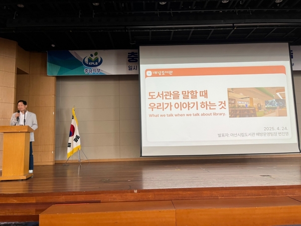 [충청뉴스큐] 아산시 배방도서관이 지난 24일 충남 보령에서 개최된 ‘2025년 충청남도 공공도서관 협력 워크숍’에서 ‘2025년 도서관 운영평가 도서관 혁신 우수사례’를 발표했다.