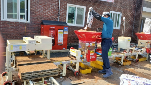 센터는 벼 우량 육묘 생산의 효율성을 높이고 농가의 노동력을 절감하기 위해 농가에 볍씨파종기를 지원한다.