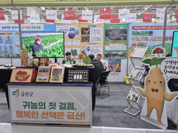 귀농·귀촌을 통한 지역 살리기를 위해 추진되는 이번 박람회에 충남도 13개 시군이 함께하는 통합 부스가 운영됐으며 금산군의 귀농·귀촌 상담을 비롯한 정책 안내, 지역 특산물 전시, 금산세계인삼축제 소개 등이 진행됐다.