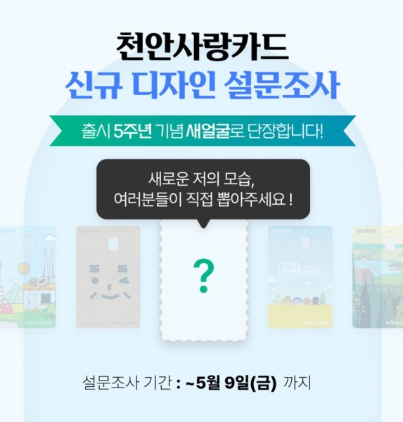 [충청뉴스큐] 천안시가 천안사랑카드 출시 5주년을 맞아 카드 디자인을 새롭게 바꾼다.