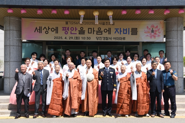 [충청뉴스큐] 당진경찰서는 불기 2569년 부처님 오신 날을 맞아 경찰서 청사 내에서 ‘부처님 오신 날 점등식’을 개최했다.