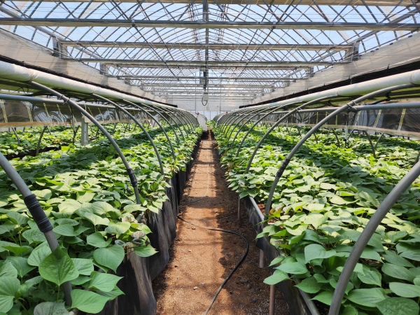 이번에 공급되는 국내 육성 품종인 건전 종순 ‘소담미’는 송산면 가곡리에 위치한 밭작물 채종포 고구마 종순 생산 하우스에서 생산됐으며 약 10.9t에 이르는 씨고구마 생산이 가능하다.