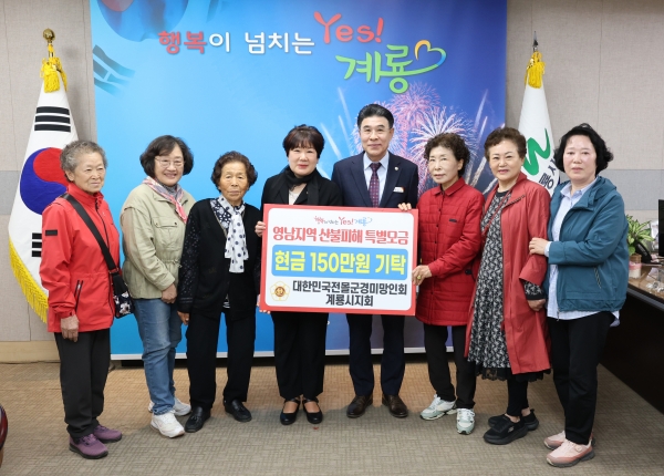 이응우 시장은 “어려운 이웃을 돕고 사회와 더불어 살아가는 나눔의 정신을 보여주고 계신 전몰군경 미망인회 계룡시지회에 진심으로 감사드린다”며 “기탁해 주신 성금은 산불로 어려움을 겪고 계신 분들에게 소중히 전달하겠다”고 말했다.