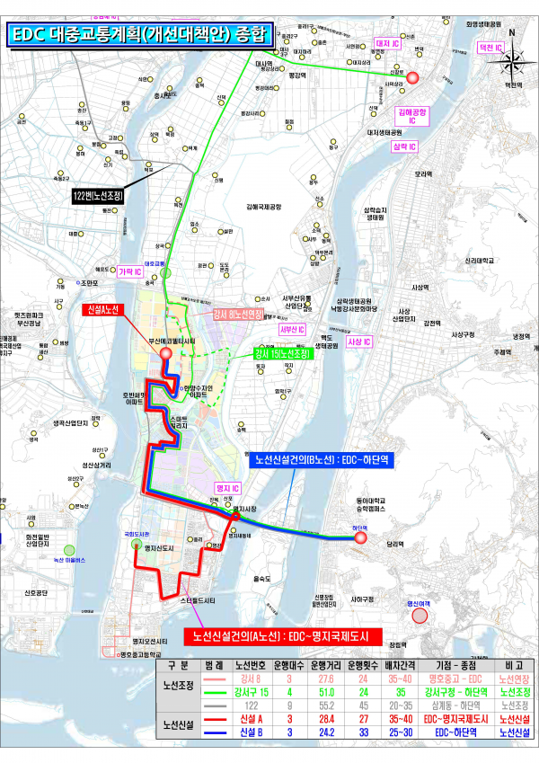 노선은 △에코델타시티~명지새동네~국회도서관 구간과 △에코델타시티~강서경찰서~하단 구간으로 배차 간격은 각각 30~35분, 30분이다.