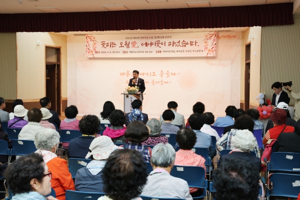 이번 행사는 ‘꽃피는 오월愛, 어버이 꽃이 피었습니다’라는 주제로 관내 어르신 약 100여명을 모시고 축하공연, 체험 부스 운영 등 다채로운 프로그램이 열렸다.