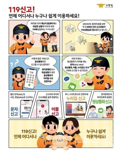김종욱 천안서북소방서장은 “긴급한 순간에는 무엇보다 빠른 신고가 가장 중요하다”며 “다양한 신고 수단이 마련된 만큼 시민들께서도 이를 잘 숙지해 위급 상황에서 적극적으로 활용하길 바란다. 앞으로도 꾸준한 홍보와 교육을 통해 시민의 안전 확보에 힘쓰겠다”고 전했다.