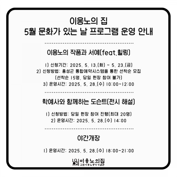 [충청뉴스큐] 충남 홍성군 고암이응노생가기념관이 오는 28일 예술 체험과 문화 향유가 결합된 ‘문화가 있는 날’을 운영한다.
