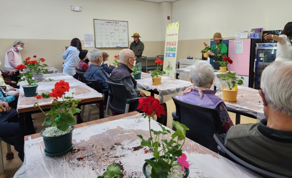 이번 프로그램은 어르신들이 옛 추억을 공유할 수 있는 ‘은빛공감 이야기’를 주제로 인지행동치료를 돕기 위해 꽃과 채소를 활용해 프로그램을 진행했다.