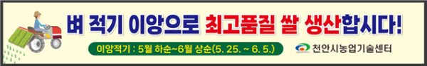 [충청뉴스큐] 천안시농업기술센터는 영농철을 맞아 최고품질의 쌀 생산을 위해 ‘적기 이앙’을 당부했다.