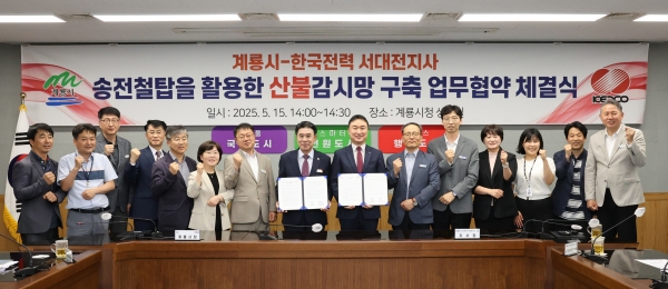 [충청뉴스큐] 계룡시와 한국전력공사 서대전지사는 지난 15일 송전철탑 산불 감시망 구축 사업 관련 업무협약을 체결했다고 밝혔다.