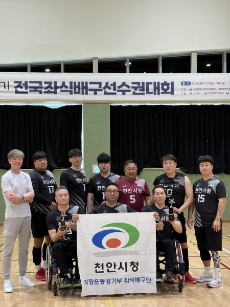 [충청뉴스큐] 천안시청 직장운동경기부 좌식배구단이 올들어 두 번째 우승을 달성하며 전국대회 우승을 이어가고 있다 천안시는 좌식배구단이 지난 16일부터 18일까지 ‘제31회 대구광역시장기 전국좌식배구선수권대회’에서 남자 전문부 우승을 차지하며 대회 9연패를 달성했다고 20일 밝혔다.