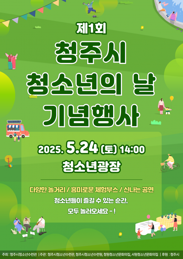 한편 제1회 청주시 청소년의 날 기념행사는 청주시청소년수련관이 주최하고 청주시청소년수련시설이 주관하며 시가 후원한다.