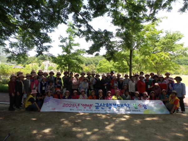 [충청뉴스큐] 금산군보건소는 자연 속 신체 활동을 통해 건강을 증진하고 문화적 학습 기회를 얻는 뜻깊은 시간을 가지기 위해 지난 20일부터 22일까지 일정으로 경남 함양군 상림공원에서 ‘양생 금산행복대학’ 2025년 봄 소풍에 나섰다.