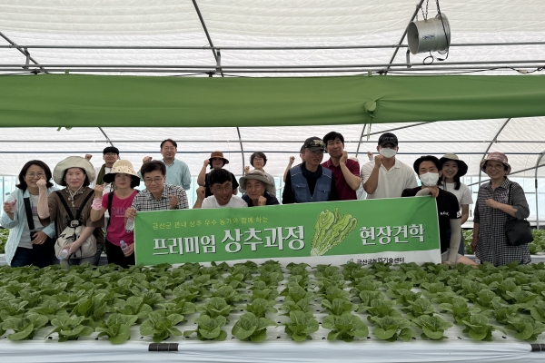 [충청뉴스큐] 금산군은 지난 21일 스마트농업교육 교육생 20명을 대상으로 관내 청상추 토경재배, 포기상추 양액재배 우수 농가 현장 견학을 시행했다.